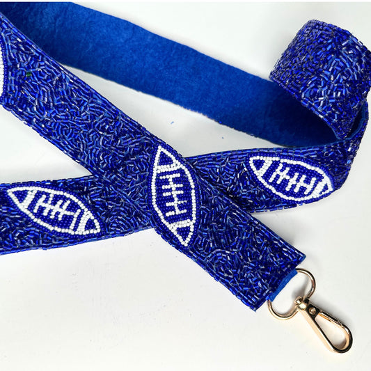 Blue & White Beaded Football Bag Strap
