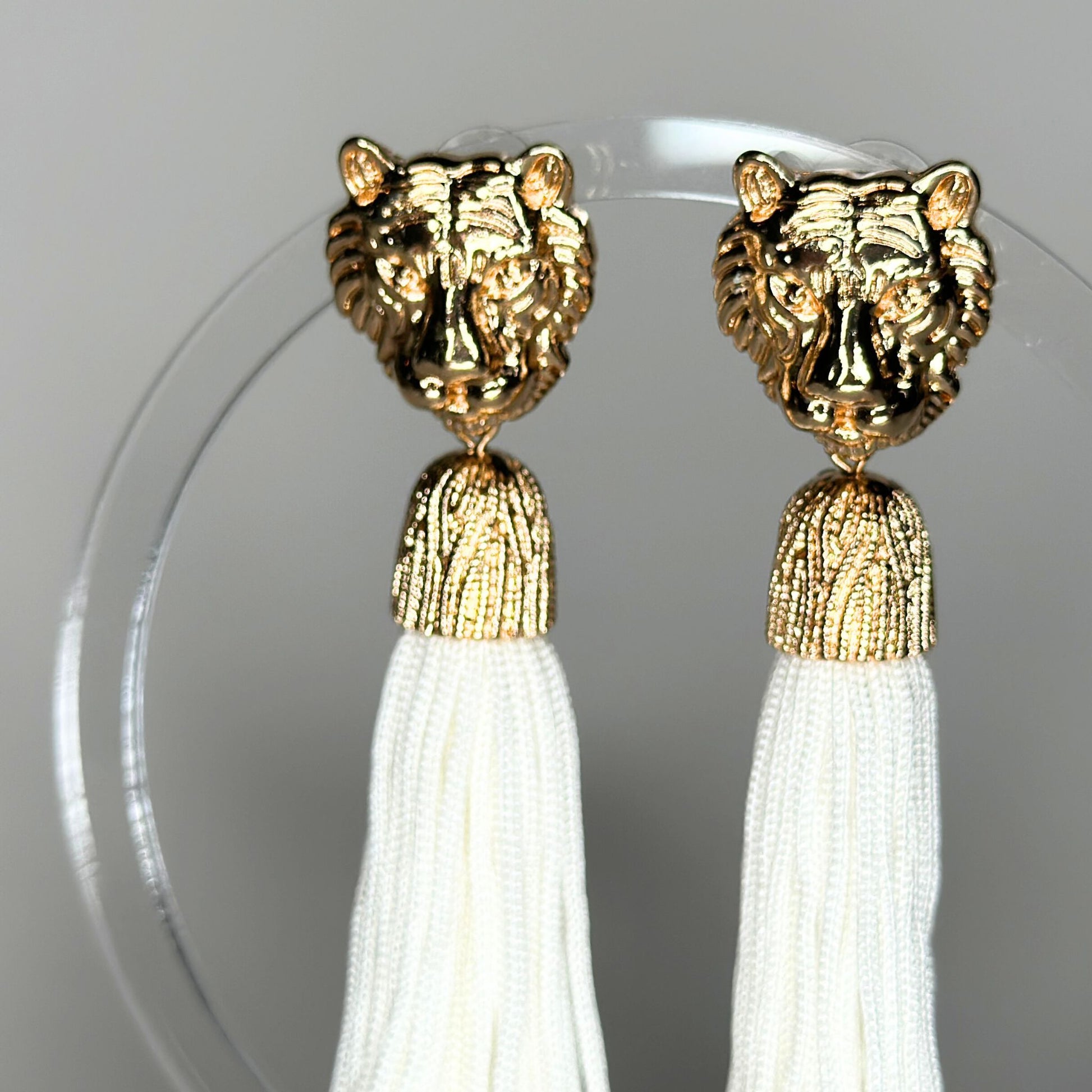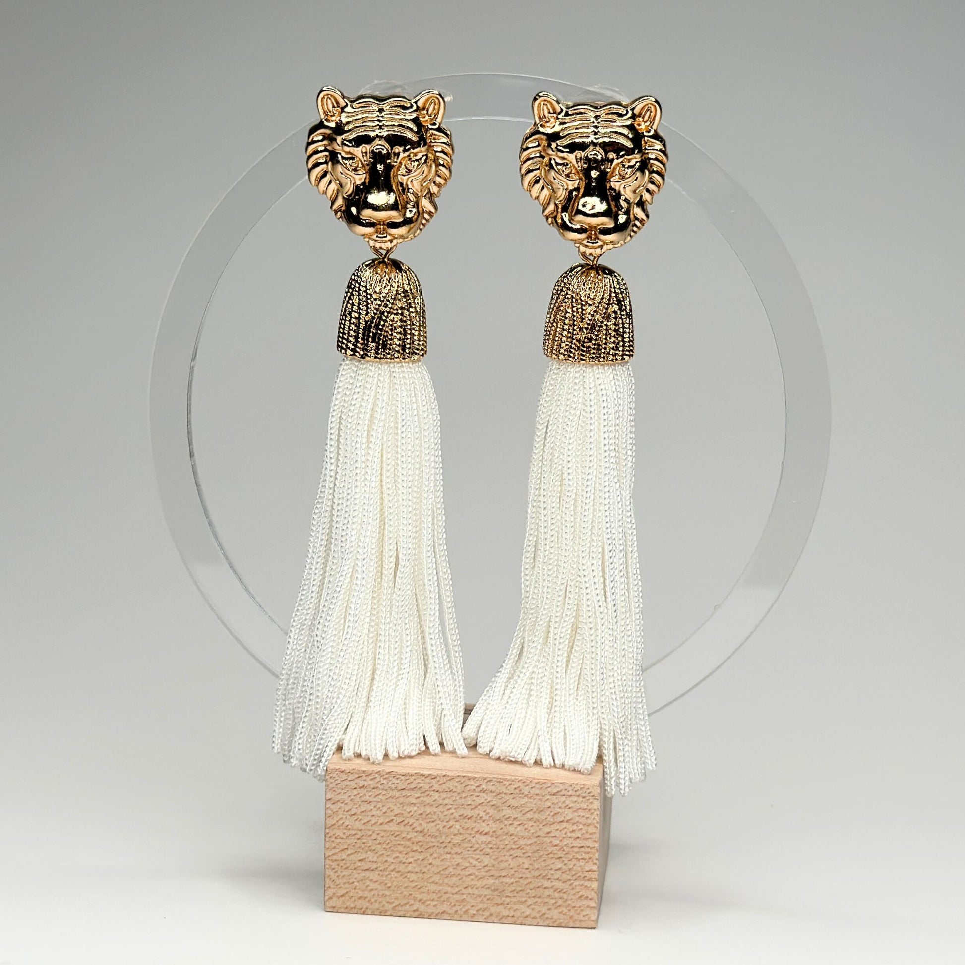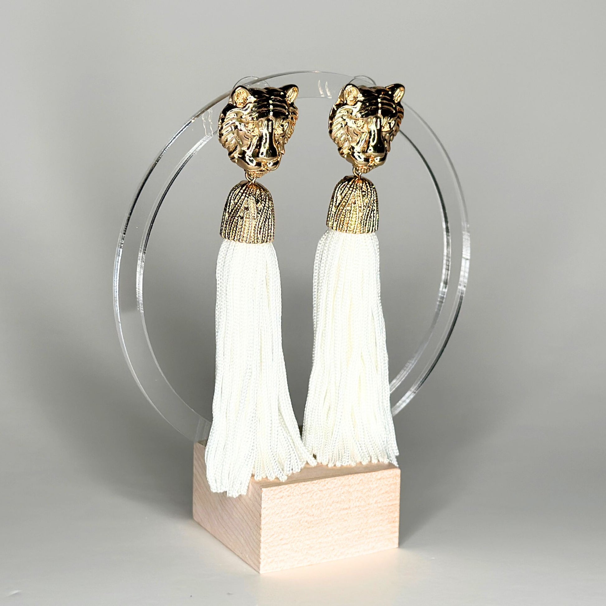 Tiger Tassel Earrings-White